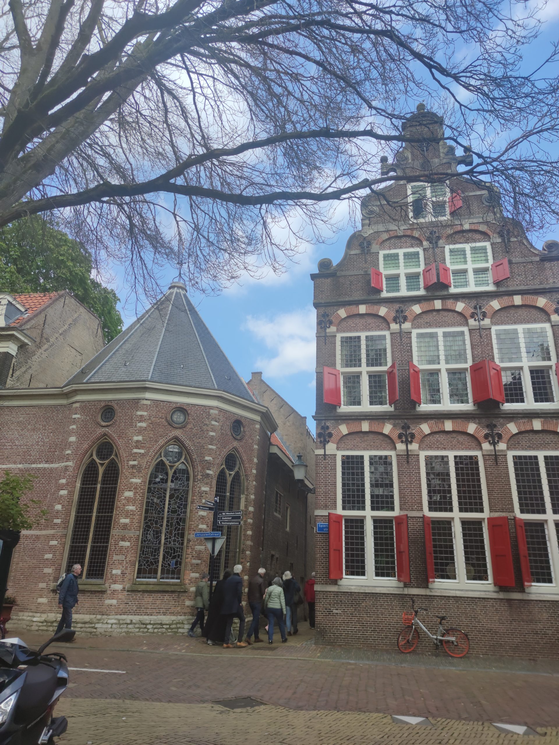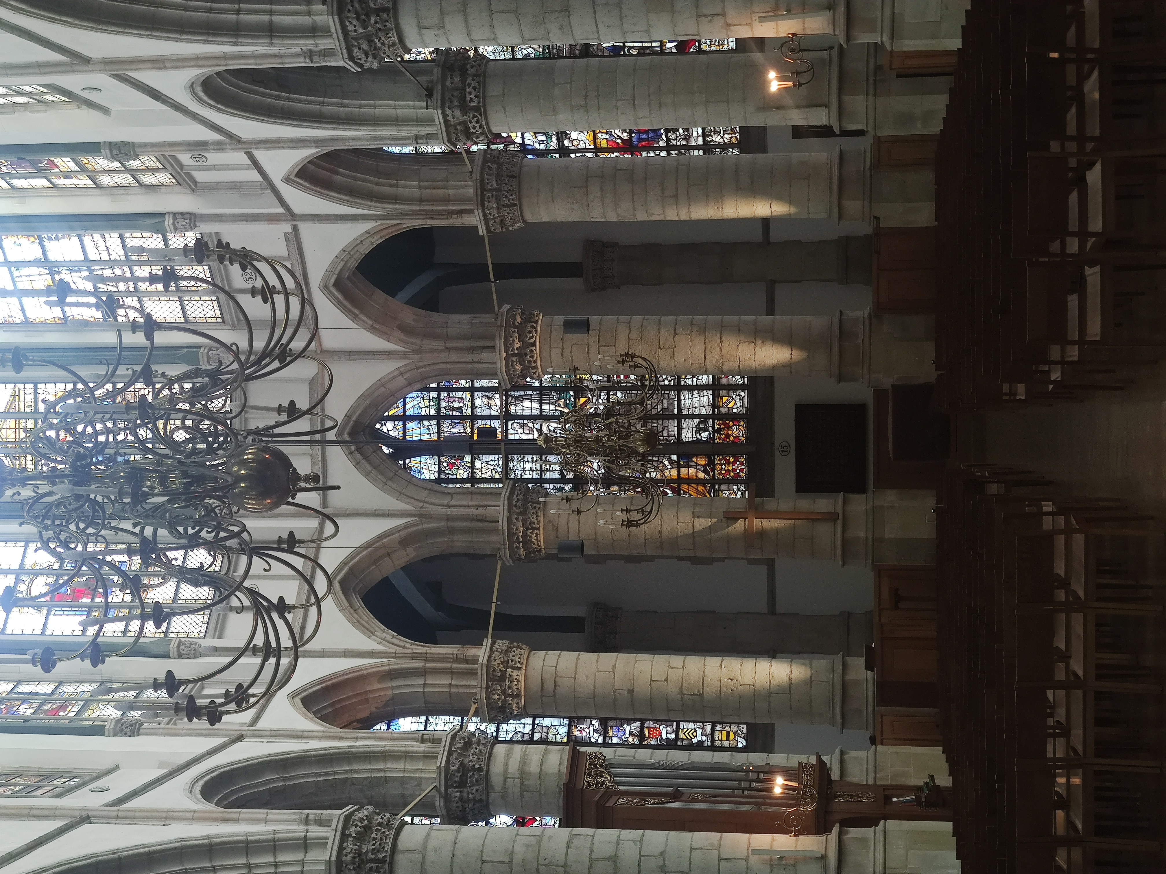 Continue your walk to the cheese shop. Nice place to get a memory from Gouda, some gouda. Walk through Jeruzalemstraat and then Achter de Kerk. You arrive now at Sint-Janskerk. This beautiful church boasts astonishing stained glass windows. An audio guide explains the meaning of the stained-glass designs.